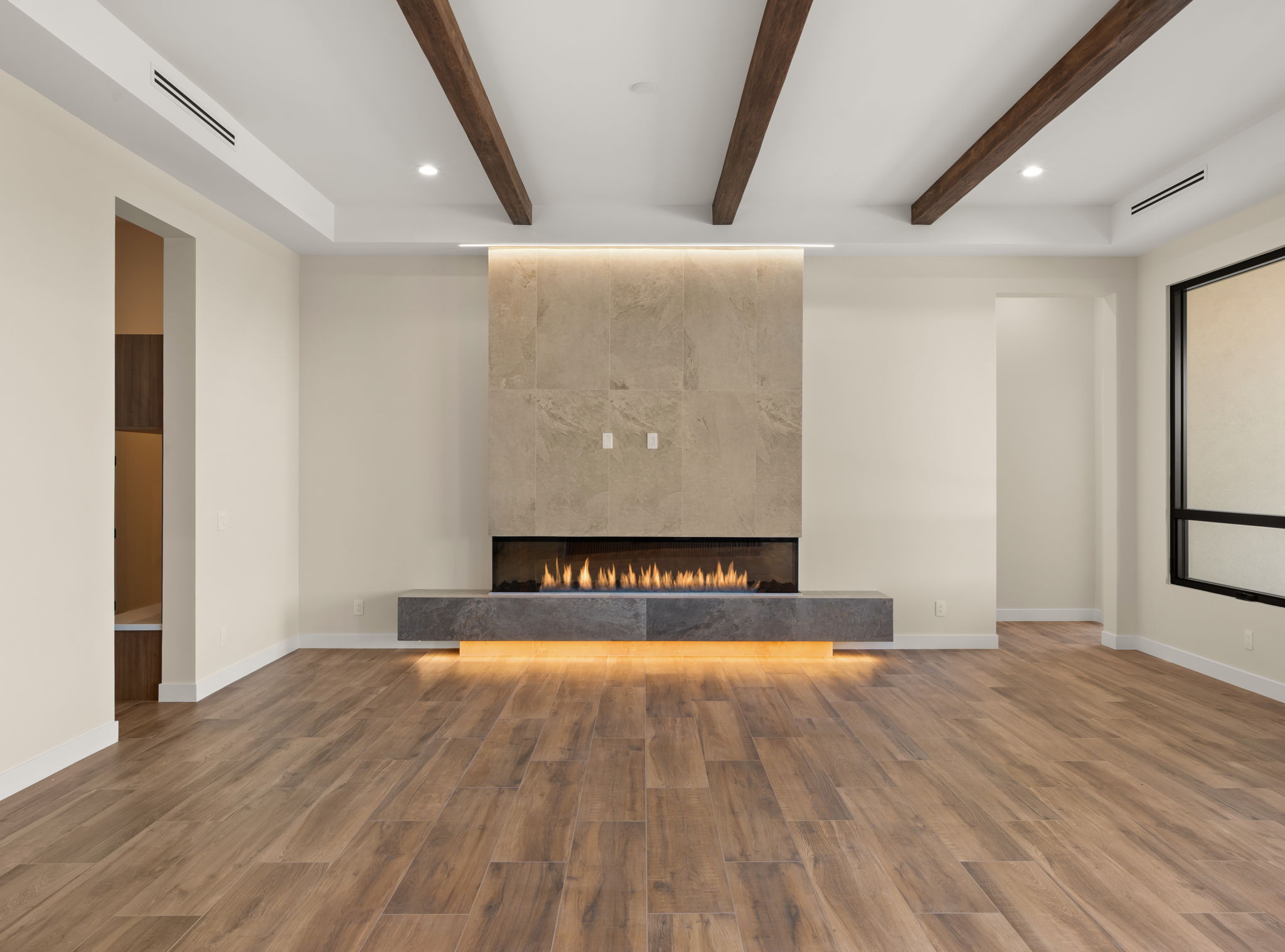 Designed with a seamless open-concept layout, the expansive Great Room is framed by oversized windows and multi-panel sliding glass doors, creating a true indoor-outdoor living experience and filling the space with natural light.